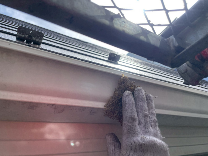 • 雨樋ケレン作業中